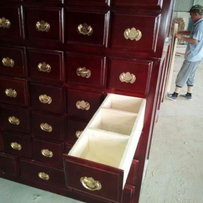 实木中药柜、中药斗、中药橱的制作、销售,建厂以来一直秉承质量、信誉的宗旨,以传统榫卯结构为基础,采用流水线工艺,既推出了新的款式,又保存了传统以手工为基础风格,架构严谨,结实耐用。
