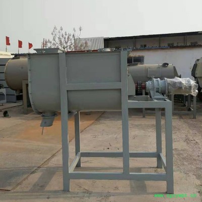 干粉涂料混合机的工作原理是:各种组分的物料按配方比例经过计量后进入混合机,物料在带状螺旋叶片的推动下进行混合。外螺带将物料从一端推动,内螺带则使物料向相反的方向运动,里层物料被推到一侧后由里向外翻滚,外层物料被推到另一侧后向里翻滚。物料在对流过程中二股物流相互渗透、变位而进行混合,在两侧翻滚过程中在进行混合,这样反复进行多次,通过出料控制机构将混合均匀后的物料从卸料门卸出。