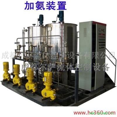 工艺原理 水中的游离CO2,能够使水呈酸性,反应如下: CO2+H2O—H++HCO3 这样水中的H+能够使碳钢等金属发生氢去极化腐蚀,造成铁质构件的损坏,反应如下: H++2e→H2 Fe→Fe+2e 特别是在温度较高且不具备缓冲性的化学除盐水中,游离的CO2会大大促使钢铁腐蚀,因此必须抑制这种电化学反应。向水中加氨提高水的PH值,可以有效抑制H+的离解,进而控制对金属的腐蚀。 流程概述 本装置主要包括药液计量泵系统、溶配系统、计量投加系统、安全系统和控制系统五个部分。 联胺由水射器吸入计量系统,然后按比例加入溶配系统与除盐水或冷凝水混合均匀,由计量投加系统投加到锅炉给水中去。投加控制可采用手动方式,也可根据上位系统输出的控制信号,进行自动控制,自动投加。本装置不仅能够投加联胺,稍作改动,还能都投加碳酰肼、二甲基酮肟等其它除氧剂。 适用范围 高压及更高参数锅炉给水处理| 名称 | 组合类型 | 溶药箱体 (立方) | 计量泵结构 | **大流量 (L/H) | **大压力 (MPa) | 控制方式 |
