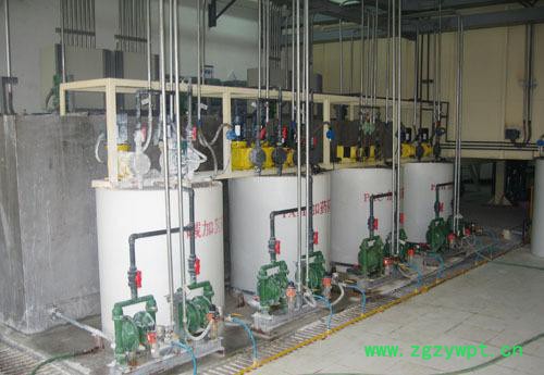简单型一体化加药设备 根据原料形态的不同,可分为型SSJY-1和SSJY-2型两种。 SSJY-1型主要含有贮药罐和投加计量泵,贮药罐中不设搅拌器,可直接投加液态的化学药剂。设备不需复杂的控制信号进行控制,当人工设定好投加量后,设备可连续自动运行。设备结构简单,操作方便,能满足一些小型用户原先手动投加造成的投量不准、操作麻烦的问题。 SSJY-2型主要采用特殊设计的水力循环搅拌罐,可实现一些易溶固态药剂的溶解和投加。 性能特点: 设备具有结构简单,占地面积小,操作方便,价格便宜等特点,可投加水处理电解质、酸碱及次氯酸钠等药剂,对加药量要求并不严格的污水处理、中水处理以及医院污水等的工艺具有广泛的使用价值。 SSJY-A型全自动加药设备 性能特点:加药量**、恒定。加药能力大,适用范围广。 全自动控制,无需工人管理,操作简便、管理简单。 药剂投加量易于调节。可用于液液、固液、气液药剂溶液的配制、定量投加。 SSJY-B型全自动加药装置 加药装置主要特点 1、功能配置全,安全性高,性能稳定 2、集装式,便于运输、安装、维护 3、独立电控箱,便于安装调试(亦可配置远程/自动控制) 4、溶液箱材质:PE、碳钢、碳钢衬胶、304(316)不锈钢 5、搅拌器材质:碳钢、碳钢衬胶、304不锈钢、316不锈钢 6、计量泵过液分材质:UPVC、PVDF、碳钢、304不锈钢、316不锈钢 技术参数: 设备名称 组合形式 液箱容积 计量器 电器负荷 外形尺寸 流量 压力 加氨装置 一箱二泵 1.0 40 1.6 3 1600×2400×2600 二箱三泵 58 2.5 4 3000×2400×2600 加联氨装置 一箱二泵 40 1.6 3 1600×2400×2600 二箱三泵 58 2.5 4 3000×2400×2600 加磷酸盐装置 一箱二泵 30 20 6 1600×2400×2600 二箱三泵 47 24 10 3000×2400×2600 加阻垢剂装置 一箱二泵 58 1.6 4 1600×2400×2600 二箱三泵 160 1.6 6 3000×2400×2600 注:组合加药装置形式可根据用户现场情况确定 加药装置定货须知: 1、告知用于何种加药。 2、箱泵配备,一般为一箱两泵一台电动搅拌器组成一整套系统,亦可选两箱四泵,两箱多泵,多箱多泵多种结构。 3、控制系统:分半自动化和全自动控制。 4、压力及药箱容积。