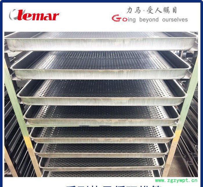烘车的制作,立柱用不锈钢方管,横梁为不锈钢角钢,采用氩弧焊焊接。车轮用耐高温尼龙轮,每辆烘车配2个定向轮,2个变向轮。烘车整体,结构合理,强度大,美观实用;