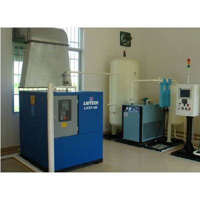 空气净化系统由冷干机及三支精度不同的过滤器及一支除油器组成,通过冷冻除湿以及过滤器由粗到精地将压缩空气中的液态水、油、及尘埃过滤干净,使压缩空气压力露点降到2~10℃,含油量降至0.001PPm,尘埃过滤到0.01μm,保证了进入PSA制氮机原料气的洁净。