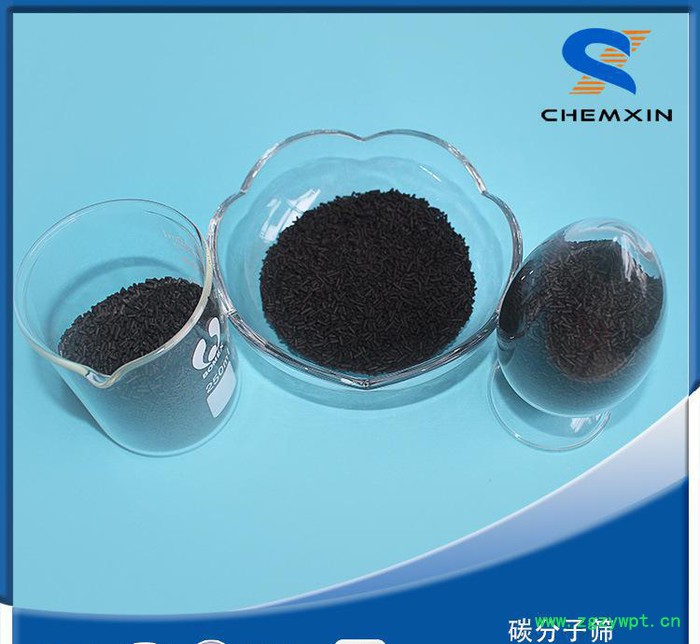 | 具体应用 | CMS的主要成分为元素碳,外观为黑色柱状固体。因含有大量直径为4A微孔,该微孔对氧分子的瞬间亲和力较强,可用来分离空气中的氧气和氮气,工业上利用变压欺负装置(PSA)制取氮气。 | |||