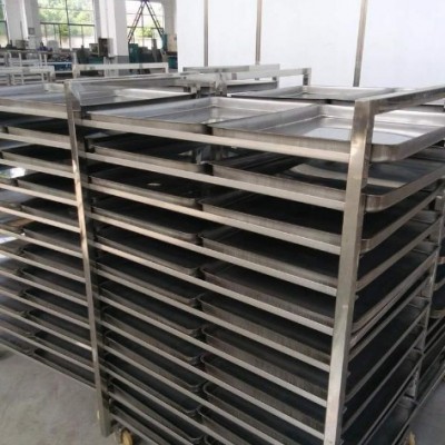 9、本厂生产烘车,烘盘尺寸统一、可以互换。烘盘尺寸:460×640×45㎜。