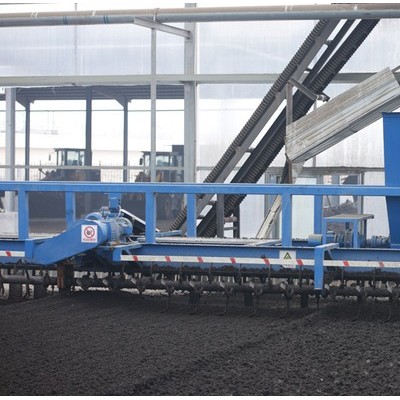 太阳能干化装置的核心部件为翻泥机,可以沿整个干化车间的宽度前进后移,并对污泥进行360度整体旋转翻抛,翻泥机具有污泥翻滚,污泥切割!污泥混合和污泥运输等多种功能。翻泥滚筒的转速可以自由设置,并根据气象条件进行时间控制设置。