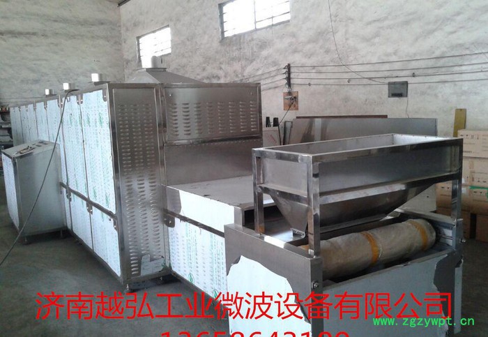 该设备是根据黄粉虫的干燥特性而设计的微波设备,设计合理、功能齐全。经实践证明,该设备具有膨化效果好、色泽金黄、干燥速度快、设备操作简单、自动化程度高的优点。另外,该设备的杀菌效果异常优良(已经过食品相关部门的验证),因此,可以完全满足黄粉虫的深加工要求