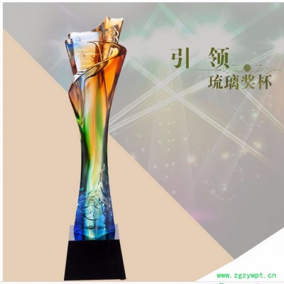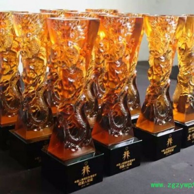 广州琉璃奖杯工厂定制大展宏图精鹰琉璃奖杯,琥珀色**琉璃奖杯制作