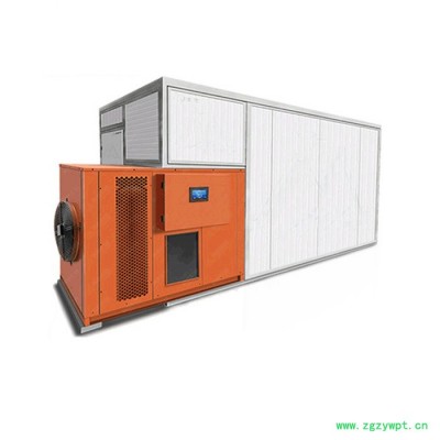 烘干机主要构造: 1、 主机:热泵烘干除湿机(热泵烘干机利用输入很少的电能吸收空气中的免费热量,用来烘干物料) 2、 烘干房:聚氨酯发泡保温库房(定制),用来摆放物料,以及保温以免热量散失。 3、 烤房循环系统:热风循环系统,将热量带到烘干房的每个角落提升烘干房的温度,并将物料蒸发出来的水分带走。 4、 排湿排水系统:将烤房里边的高温湿热的空气大部分冷凝变成水排掉,多余的水汽通过风机排出。 5、 全自动智能控制系统:按照合适的烘干工艺曲线,自动调节温度和湿度、烘干时间。 6、 高效节能技术:高效废热回收除湿装置,比普通热泵烘干机提升能效30%。