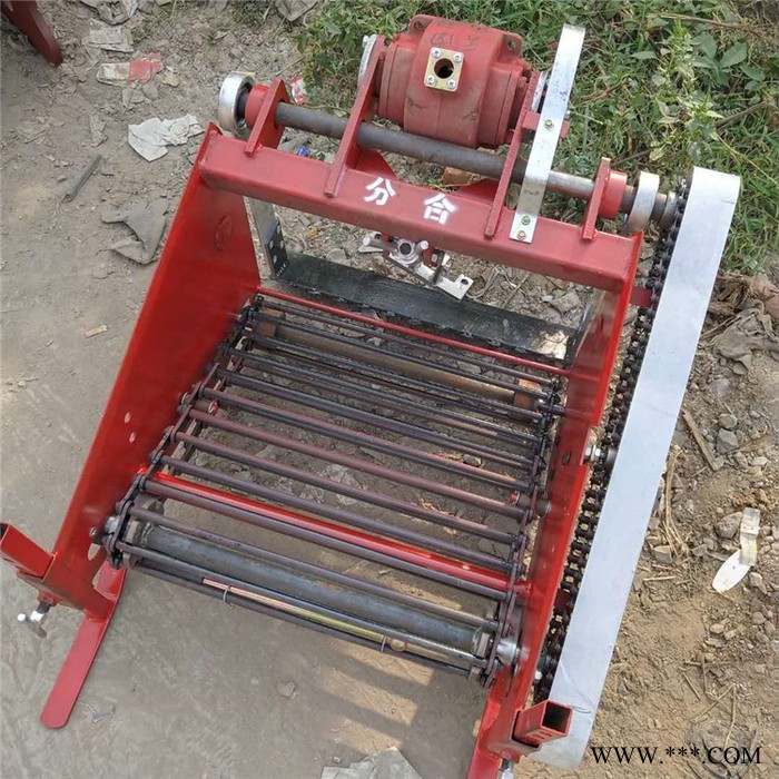 五.操作简便,本机调整简便,只调整深浅**行了,可以顺行收获,也可以横着收获,收获机两边都不会挂掉果。该机与拖拉机配套使用,专门用于红薯、红薯、芋头、大姜等农作物的收获,可收获单垄单行三垄或单垄双行两垄,收获后集条式放果实,更深得用户的青睐。