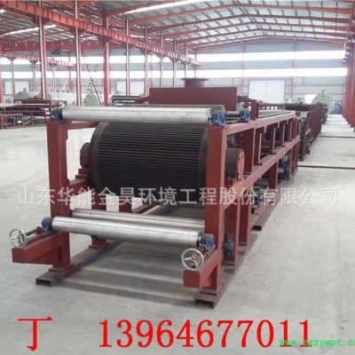 我公司研究国内外多家带式压滤设备生产企业的先进结构设计技术,并且通过改进,制造出新型的带式压滤机,我公司的产品设计合理,坚固美观,维修方便,高效可靠,成功避免了传统压辊呈水平型布置的带式压滤机其中一半压辊做无用功的缺点,充分发挥了带式压滤机的脱水性能,脱水性能**。具有独特的多段脱水设计,脱水效率高,滤饼含水少,适用于污水处理、造纸、皮革等各种污水处理工程,应用范围广泛。 带式压滤机在过渡脱水区采用了**国际的弧型辊包脱水技术,有效地解决了当大泥量时污泥从带式压滤机的滤带两侧跑泥的问题;带式压滤机的网带冲洗系统采用了不锈钢自净喷嘴,降低了冲洗水的水质要求,冲洗水可采用二沉池的出水,并且能够自行冲掉堵塞在喷嘴的脏物,带式压滤机的运行成本得到了进一步降低。