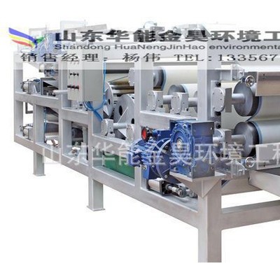 我公司研究国内外多家带式压滤设备生产企业的先进结构设计技术,并且通过改进,制造出新型的带式压滤机,我公司的产品设计合理,坚固美观,维修方便,高效可靠,成功避免了传统压辊呈水平型布置的带式压滤机其中一半压辊做无用功的缺点,充分发挥了带式压滤机的脱水性能,脱水性能**。具有独特的多段脱水设计,脱水效率高,滤饼含水少,适用于污水处理、造纸、皮革等各种污水处理工程,应用范围广泛。 带式压滤机在过渡脱水区采用了**国际的弧型辊包脱水技术,有效地解决了当大泥量时污泥从带式压滤机的滤带两侧跑泥的问题;带式压滤机的网带冲洗系统采用了不锈钢自净喷嘴,降低了冲洗水的水质要求,冲洗水可采用二沉池的出水,并且能够自行冲掉堵塞在喷嘴的脏物,带式压滤机的运行成本得到了进一步降低。
