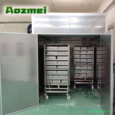 烘干机主要构造: 1、 主机:热泵烘干除湿机(热泵烘干机利用输入很少的电能吸收空气中的免费热量,用来烘干物料) 2、 烘干房:聚氨酯发泡保温库房(定制),用来摆放物料,以及保温以免热量散失。 3、 烤房循环系统:热风循环系统,将热量带到烘干房的每个角落提升烘干房的温度,并将物料蒸发出来的水分带走。 4、 排湿排水系统:将烤房里边的高温湿热的空气大部分冷凝变成水排掉,多余的水汽通过风机排出。 5、 全自动智能控制系统:按照合适的烘干工艺曲线,自动调节温度和湿度、烘干时间。 6、 高效节能技术:高效废热回收除湿装置,比普通热泵烘干机提升能效30%。