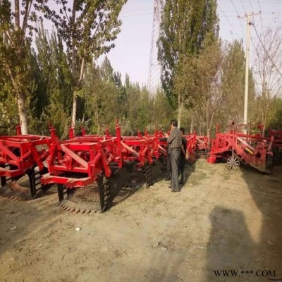 用途和适用范围: 本公司生产的药材收获机可一机多用,适合丹参、党参、黄芩、辣根、桔梗、白芷、徐长卿、三七、天花粉、板蓝根等多种根茎类、块茎类药材的收获。 本厂生产的机器,通过调换不同筛网可替代花生收获机,红薯收获机等薯类收获机使用,本机有不同的筛网选择,用户可根据当地土质及土壤干湿程度行调换筛网。 本公司可根据用户需求定做各种尺寸的机器,一定达到客户满意。 使用配套大型**拖拉机经悬挂,传动轴连接,开动机器,根据药材根茎深度调节后轮,缓慢将深铲插入土壤中。将药材根茎挖出,经振动筛振动将土筛净后,使药材传送地表面,完成采挖工作。