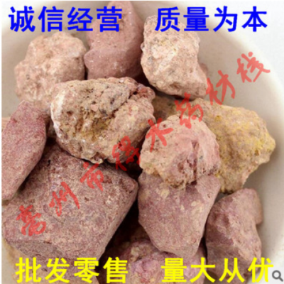 【性状】本品为块状集合体,呈不规则的块状。粉红色、红色至紫红色,或有红白相间的花纹。质软,易碎,断面有的具蜡样光泽。吸水性强。具黏土气,味淡,嚼之无沙粒感。