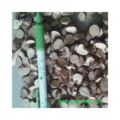 性状及颜色:表皮红棕色,断面黄白色,皮细紧,有纵纹,断面有粉性,味甜,虫蛀,霉变。