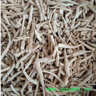 [性 状]:本品呈纺锤形、圆柱形或圆锥形,长2~8cm,直径0.5~2cm。表面浅黄褐色或黄白色,可见横向环纹及线状皮孔,并有细密浅纵皱纹及须根痕。断面平坦,浅黄白色,略显粉性,皮部可见黄棕色点状树脂道,形成层环纹棕黄色,本部略呈放射状纹理。气微而特异,味微苦、甘。