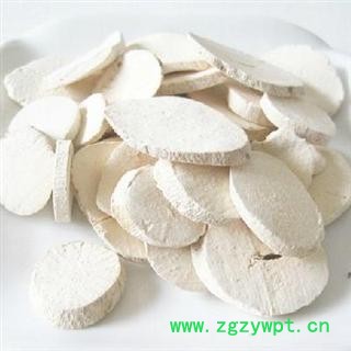 货物情况:统个,质坚实,断面白色或淡黄色,富粉性,横切面可见黄色木质部,略呈放射状排列,纵剖面可见黄色纵条纹状木质部,无臭,味微苦,无加重粉