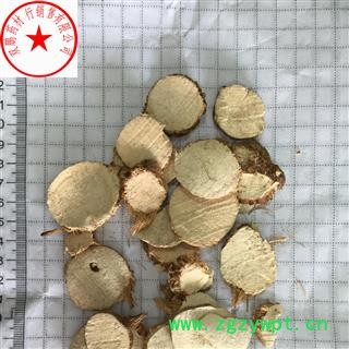 产品性状:不规则圆形片,外表灰白色,断面黄白色。