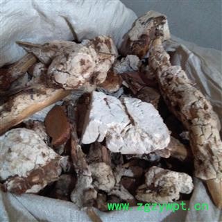 【性 状】干燥的菌核与茯苓相同,惟中间有一松树贯穿。商品多以切成方形的薄片,质坚实,具粉性。切断的松根棕黄色