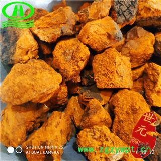 【性 状】菌核呈现瘤状,外表黑灰,有不规则沟痕,内部黄褐色,无柄,深色,表面深裂,很硬,干时脆,暗褐色,菌肉木柱质,有轻微的、模糊不清的环纹,鲜(明亮)淡黄褐色