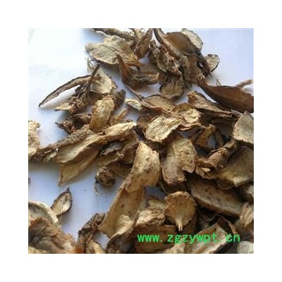 性 状:该品块根长圆形或纺锤形,多纵切成瓣或斜片。完整者长5-12cm,直径1.5-3.5cm。表面红棕色或红褐色,有纵皱纹、细横纹及横长皮孔,栓皮易层层脱落,脱落处显淡红棕色,剖面类白色或淡红棕色,皱缩不平。斜片呈卵圆形,长2.5-5cm,宽2-3cm,切面类白色或浅红棕色,可见放射状纹理,周边较厚,微翘起或略弯曲。体轻,质硬脆,粉性。气微,味微甜。以肥大、断面粉红色、粉性足者为佳。