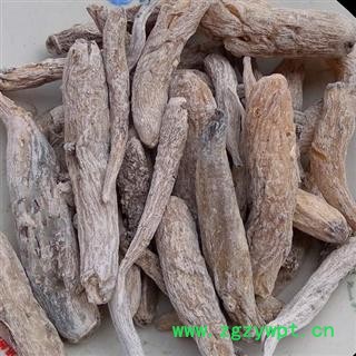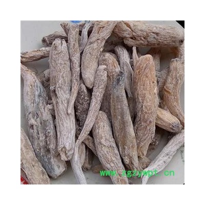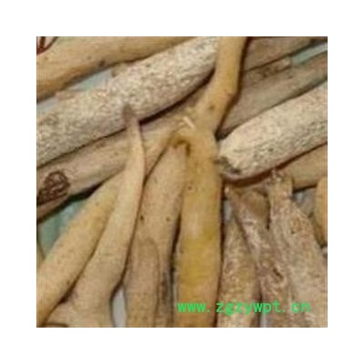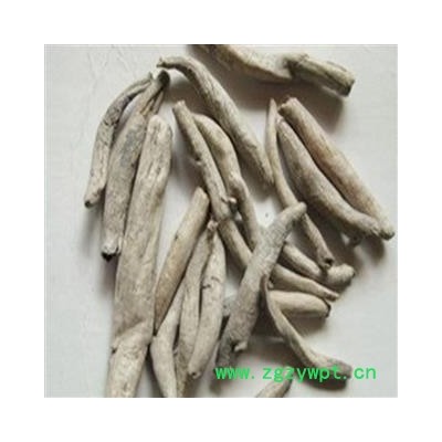【性状】根圆柱形,常横切或纵切成大小不规则决片。横切者类圆柱状或圆片状,直径达4cm,栓皮表面棕褐色,有纵沟纹、横长皮孔样突起及支根痕。质坚实,不易折断。横切面灰白色,有凹凸不平的同心环纹,纵剖面有纵条纹。粉性。气微,味辛,嚼之有刺喉感。