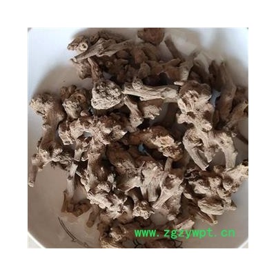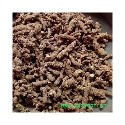 【药材性状】根呈拳形肥厚的圆块状,长3~6厘米,直径约3厘米,表面灰棕色或棕黄色,全体多有瘤状突起及断续的弧状沟纹,在突起物顶端常有茎基或芽痕,下部有须根或已折断。质坚实,不易折断,断面不平,新鲜时白色,干燥者呈淡黄色,有菊花心