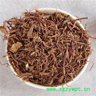 【表面特征】原形态毛须状,表面紫红色或灰红色,有纵皱纹;质较柔韧,易折断,断面淡棕色,边缘一圈现紫红色,中内有细小木心。气微香,味甜、微苦