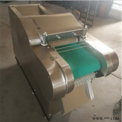 包含单切机的所以功能的同时,也可切圆形如土豆、萝卜等。可将根、茎、叶等蔬菜加工成片、丝、丁、菱、曲线、花丁、花片等。切片装置用于硬菜(萝卜、土豆、水果、薯类)的切片,厚度在1-10毫米内自由调整;往复竖刀将刀成的菜片或软菜(韭菜、芹菜)切成直丝或段、曲线丝、方丁(或形刀)输送带每次移动距离1-20毫米自由调整。所调整量即为丝段的宽度;应注意被切菜直径较粗时(大于30毫米)出片效果才好,便于切丁,直径小时制的片或丁将会杂乱。被切菜加工面平整光滑、规则,组织完好,保持手工切制的效果。