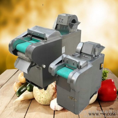 多功能型切菜机包含单切机的所有功能的同时,也可切圆形如土豆、萝卜等。 可将根、茎、叶等蔬菜加工成片、丝、丁、菱、曲线、花丁、花片等。切片装置用于硬菜(萝卜、土豆、水果、薯类)的切片,厚度可自由调整;往复竖刀将刀成的菜片或软菜(韭菜、芹菜)切成直丝或段、曲线丝、方丁(或形刀)输送带可自由调整。所调整量即为丝段的宽度;应注意被切菜直径较粗时(大于30毫米)出片效果才好,便于切丁,直径小时制的片或丁将会杂乱。被切菜加工面平整光滑、规则,组织完好,保持手工切制的效果。
