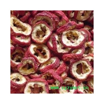 【性状颜色】圆形片,外皮红色,褐红色、具皱纹,颜色清亮,清香诱人。不添加任色素、果皮鲜红,果肉淡黄色、果片3刀4片、没去籽好货;味酸、微甜,有无虫蛀、霉变。