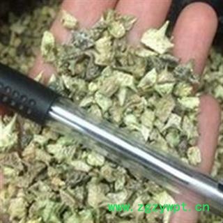 【具体描述】蒺藜复果多由5分果瓣组成,放射状排列呈五棱状球形,直径7-12mm。商品常裂为单一的分果瓣,斧状三角形,长3-6mm,淡黄绿色,背面隆起,有纵棱及多数小刺,并有对称的长刺和短刺各1对,成八字形分开,两侧面粗糙,有网纹,灰白色;果皮坚硬,木质,内含种子3-4粒。种子卵圆形,稍扁,有油性。气微,味苦。