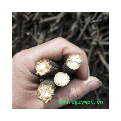 【性状】本品呈圆柱形,稍弯曲,长5~40cm,直径0.5~3cm。表面棕褐色,粗糙,有纵沟和皱纹,并有须根痕和横长的皮孔样突起,有的外皮易脱落。质硬而脆,易折断,断面粉白色或粉红色,皮部窄,木部放射状纹理明显,有的有裂隙。气微香,味微苦、酸涩。