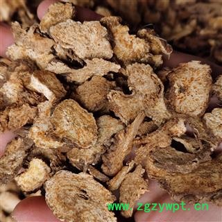 性状:本品呈不规则类圆形或条形厚片。外表皮灰棕色至黄棕色,有皱纹,有时可见根痕。切面黄白色或灰白色,散有多数橙黄色或棕红色油室,气香特异,味微甘、辛、苦