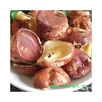 【药材性状】球形直径2.5公分左右有一层红色薄皮心白色两半