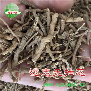 【性状颜色】: ①远志筒:呈筒状,中空,拘挛不直,长3~12厘米,直径0.3~1厘米。表面灰色,或灰黄色。全体有密而深陷的横皱纹,有些有细纵纹及细小的疙瘩状根痕。质脆易断,断面黄白色、较平坦,微有青草气,味苦微辛,有刺喉感。②远志肉:多已破碎。肉薄,横皱纹较少。③远志棍又名:远志梗、远志骨。细小,中间有较硬的淡黄色木心。