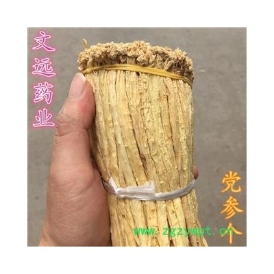 【性状规格】:本品呈细长圆柱形,末端较细,根头部有许多疣状突起的茎痕,俗称"狮子盘头"。党参长25cm左右,直径1.0到1.5cm以上。表面黄白色或淡棕色,光滑或有纵沟纹。条形较好,质硬而脆,断面皮部较薄,黄白色,中心为黄色,木部类白色。气微,味微甜。