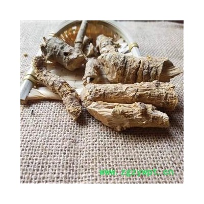 性状:本品根细长条状,直径2~10mm,表面黄色或淡黄色,有纵纹及突起,有时栓皮脱落。质脆易断,断面不平坦,纤维性。皮部约占半径的1/3~1/4,呈淡黄色。木部黄色。气微香,味微苦。