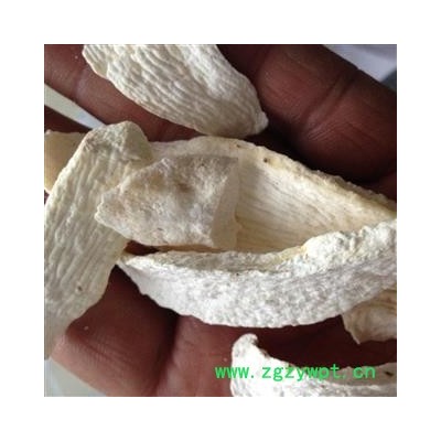 性状颜色: 略呈圆柱形 不规则 表面黄白色,断面黄白色 表面光滑 直径约4-5cm 厚约3mm