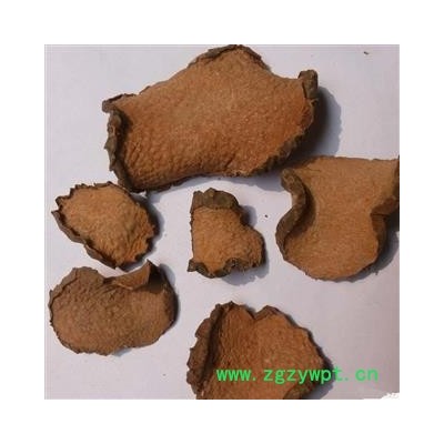 性状:多为横切厚片,圆形或近圆形,直径2.5-7cm,厚0.5-1.5cm。表面棕黑色,皱缩,有众多白色、点状突起的须根痕,或有弯曲残留的细根,栓皮易剥落;切面黄白色至黄棕色,平坦或凹凸不平。质坚脆,易折断,断面颗粒状,并散有橙黄色麻点。气微,味苦。以片大、外皮棕黑色、断面黄白色者为佳。