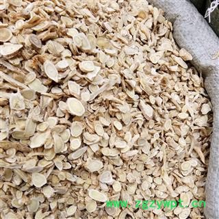 [性 状]:本品黄芪直根圆柱形、有的有分枝,上端较粗,长30~90厘米,直径1~3.5厘米,表面纵皱色淡棕黄色或淡棕褐色,有不整齐的纵皱纹或纵沟质,硬而韧有粉性,皮部黄白较疏松;木部菊花纹理状,气似豆腥味微甜。老根中心偶有枯朽状,黑褐色或呈空洞。气微,味微甜,嚼之微有豆腥味。
