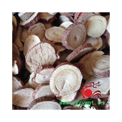 [性     状]:该药材圆形的厚片,表面深红色,切面黄白色或黄棕色,有裂隙或菊花纹,中央有淡黄色圆心。周边淡黄白色置黄棕色,有纵皱纹。有特殊香气,味微甜。