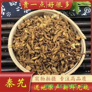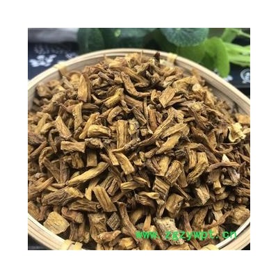 [性 状]:秦艽呈类圆柱形,上粗下细,扭曲不直,表面黄棕色或灰黄色,有纵向或扭曲的纵皱纹,顶端有残存茎基及纤维状叶鞘。质硬而脆,易折断,断面略显油性,皮部黄色或棕黄色,木部黄色。气特异,味苦、微涩。