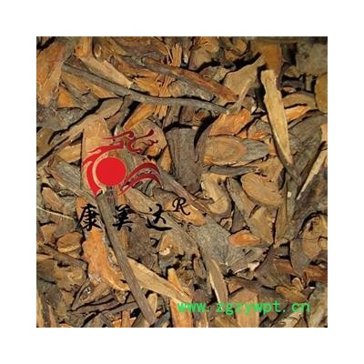 [性 状]:该品根圆柱形,略扭曲状弯曲,长18-22cm,直径0.5-2cm。有时可见侧生支根或支根痕。表面棕褐色,具明显纵皱。顶端有圆柱状根茎或其残基。质坚,稍脆,折断面平整,略具粉质。横断面形成层环明显,皮部淡黄色,木部棕黄色或带粉红色,呈显著放射状排列。气徽,味微苦涩。