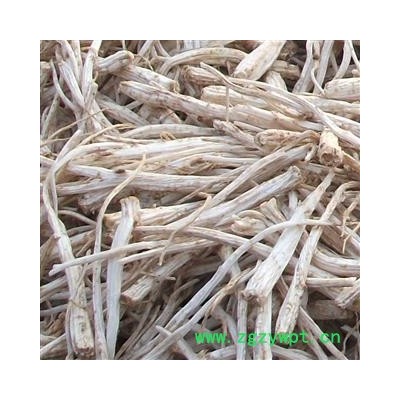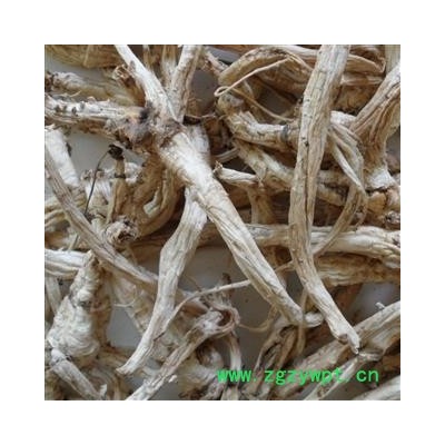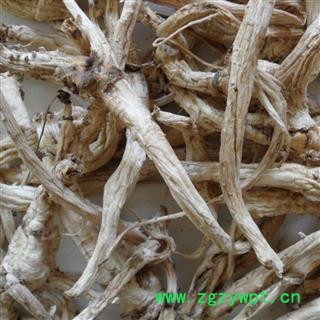 [性 状]:本品呈圆柱形或略呈纺锤形,下部渐细,有的有分枝,略扭曲,长7~20cm,直径0.7~2cm。表面白色或淡黄白色,不去外皮者表面黄棕色至灰棕色;具纵扭皱沟,并有横长的皮孔样斑痕及支根痕。上部有横纹。有的顶端有较短的根茎或不明显,其上有数个半月形茎痕。质脆,断面不平坦,形成层环棕色,皮部类白色,有裂隙,木部淡黄白色。无臭,味微甜后苦。
