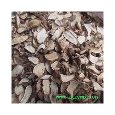 [性 状]:该品块根长圆形或纺锤形,多纵切成瓣或斜片。完整者长5-12cm,直径1.5-3.5cm。表面红棕色或红褐色,有纵皱纹、细横纹及横长皮孔,栓皮易层层脱落,脱落处显淡红棕色,剖面类白色或淡红棕色,皱缩不平。斜片呈卵圆形,长2.5-5cm,宽2-3cm,切面类白色或浅红棕色,可见放射状纹理,周边较厚,微翘起或略弯曲。体轻,质硬脆,粉性。气微,味微甜。以肥大、断面粉红色、粉性足者为佳。