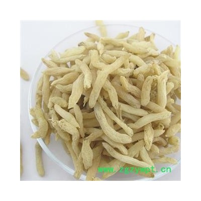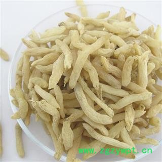 [性 状]:本品本品呈纺锤形,两端略尖,长1.2~3cm,直径0.4~0.7cm。表面淡黄色至棕黄色,具不规则纵皱纹。质柔韧,干后质硬脆,易折断,断面淡黄色至棕黄色,角质样,中柱细小。气微,味甜,嚼之发黏。