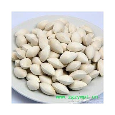 形状:本品呈椭圆形,一端稍尖,另端钝,长1.5~2cm,宽1~1.3cm。 表面白色,平滑,内部中空,有胚芽,断面粉白色。具油性,味微苦。