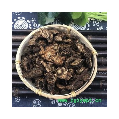 [性 状]:本品螺丝羌。为干燥的根茎部,形态似蚕。呈圆柱状或略弯曲,长约4~10厘米,直径约1~2厘米。顶端有茎叶残基。表面棕褐色,有多数紧密而隆起的环节。节上密生疣状突起的须根痕。质轻松易折断,断面不齐,有明显的菊花纹和多数裂隙,皮部棕红色;木质部淡黄色,中央有黄白色髓,均有朱砂点(油管)。具特殊香气,味微苦而麻。