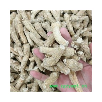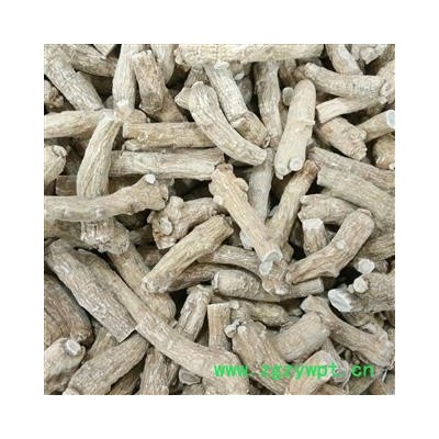 [性 状]:本品呈纺锤形、圆柱形或圆锥形,长3~12cm,直径0.8~2cm。表面浅黄褐色或黄白色,可见横向环纹及线状皮孔,并有细密浅纵皱纹及须根痕。主根中下部有一至数条侧根;多已折断。有的上端有根茎(芦头),环节明显,茎痕(芦碗)圆形或半圆形具不定根疔或已折断。体重,质坚实,不易折断,断面平坦,浅黄白色,略显粉性,皮部可见黄棕色点状树脂道,形成层环纹棕黄色,本部略呈放射状纹理。气微而特异,味微苦、甘。